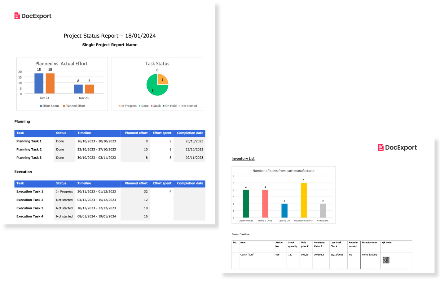Create charts and reports based on the data from your monday.com board and output them on your PDF documents.