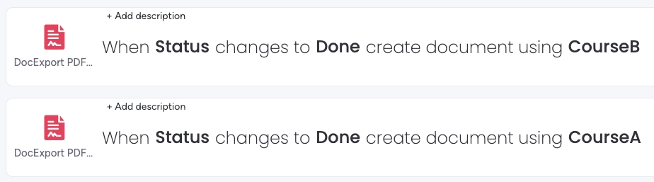 Generate documents based on a condition. Example: Create course certificates with individual templates for different course types on the same board.