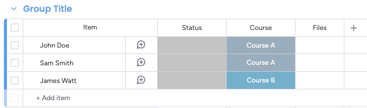 When defining the actions for your automation, click on 'Advanced settings' and select the status column for the condition. In our example, the status column is called 'Course' and the label is 'Course A' Note: currently, only the column 'Status' is supported.