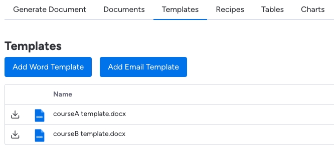 In the following example, we want to create course certificates based on the course type. Each course type has a different template.