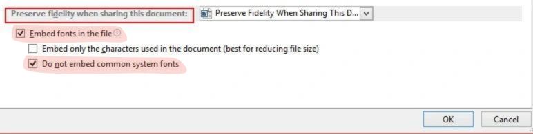 Select "Do not embed common system fonts". While this option increases the file size, it is still best for editing the document on different devices but keeping the same font without any problems.