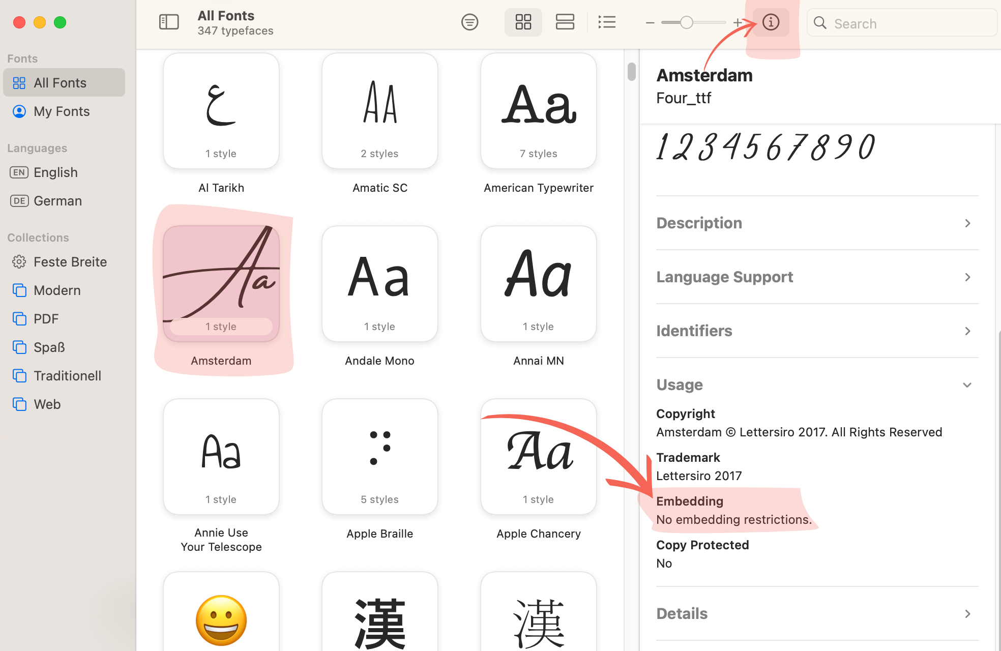 Here is how you can check which level of embedding your installed font allows.