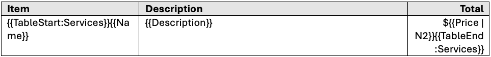 {{TableStart:Services}} and {{TableEnd:Services}}