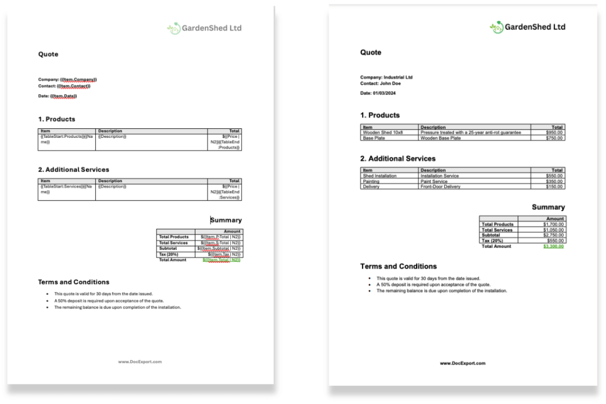 At the end of these instructions, you'll also find the docx template used in the following example.