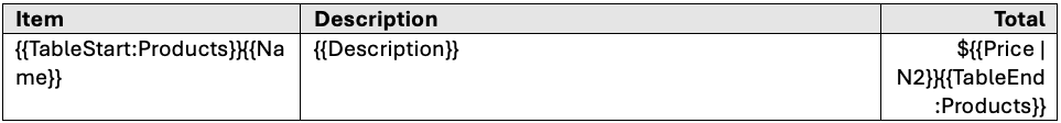 {{TableStart:Products}} and {{TableEnd:Products}}